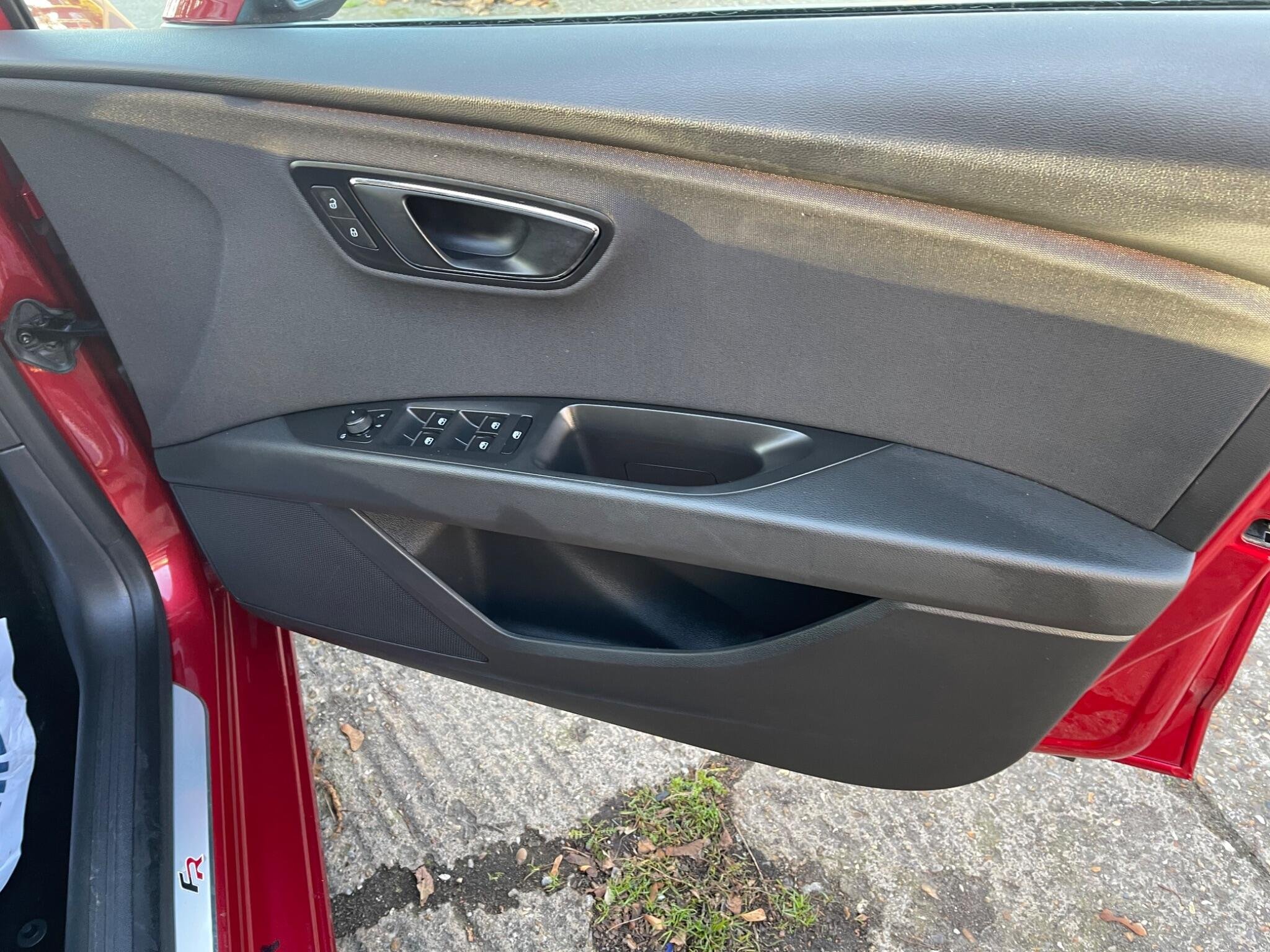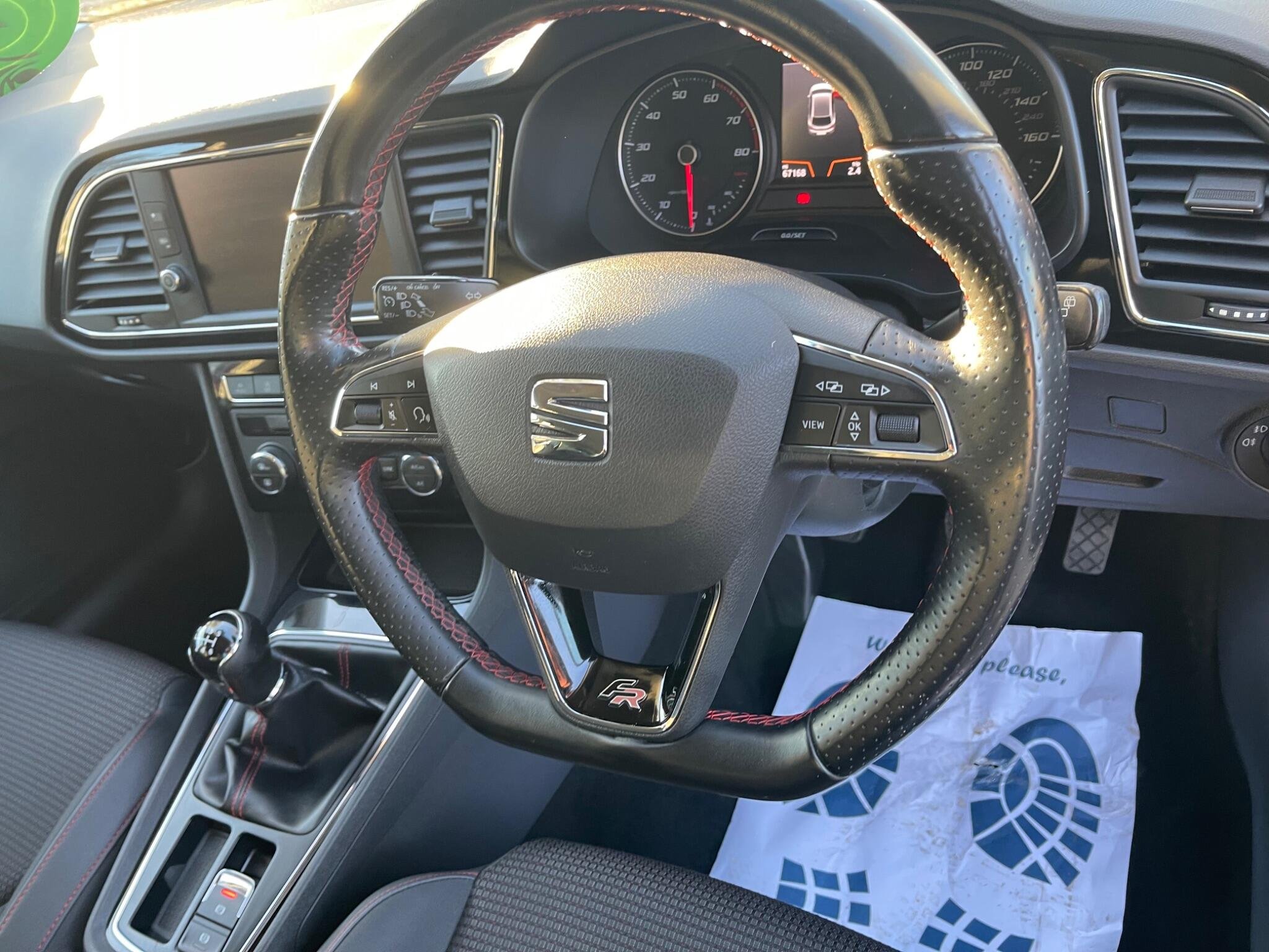 - Steering Wheel - Flat-Bottomed Perforated Leather with Red Stitching and FR Logo